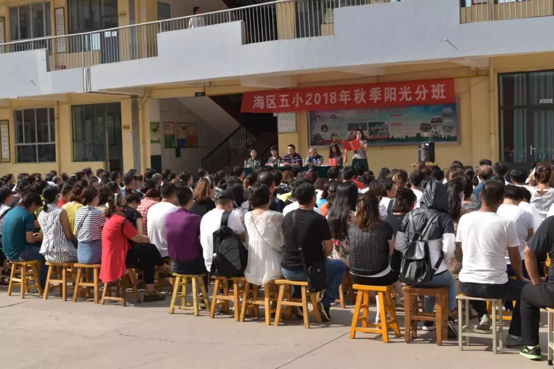 8月25日下午4:00,海勃湾区第五小学举行了2018年秋季阳光分班活动。300多名新生家长来到五小校园,与上级部门成员和媒体工作人员一起全程参与和监督学校新生分班。整个活动按程序有条不紊地进行。