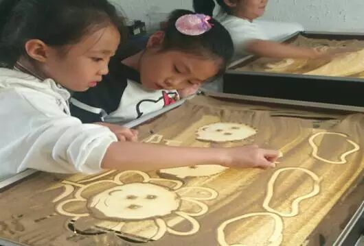 沙画社团:沙画社团是也是海区五小特色活动之一,在学习过程中社团成员能够充分表达内心世界,开拓了思维,协调动手能力,激发了创作能力,培养了孩子的想象力。