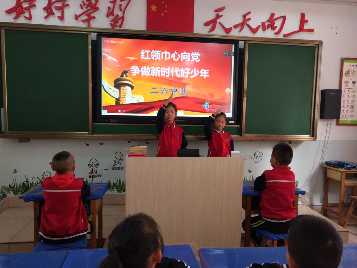 优秀少先队员们用洪亮的声音展现了少先队员的风采;诉说了对党、对祖国感恩。也用自己喜欢的诗歌形式,表达了对少先队深深的爱;队员们面对队旗共同发出一个愿望:成为书籍边的一线光亮,去读懂五千年灿烂的历史,濡养心灵、积淀生命!