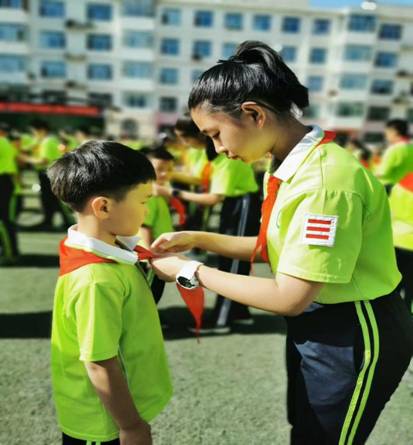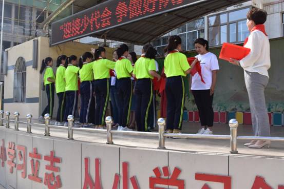 此次大队活动有一年级432名新生成为了光荣的少先队员,组建了八个新中队,聘请八位班主任承担新中队的辅导员老师。新队员们看着被无数革命英雄的鲜血染红的红领巾,不禁肃然起敬。与老队员们一起,声音洪亮地入队誓言在校园上空飘扬。赵校长为八个中队的辅导员授旗,并鼓励他们在接下来的工作中不忘初心,再接再厉,努力成为一名更优秀的中队辅导员。