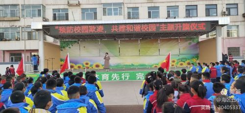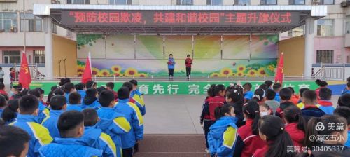 开展“预防校园欺凌,共建和谐校园”主题升旗仪式。告诉同学们校园欺凌会给学生身心带来的伤害和严重后果,所以同学们要建立平等友好的互助意识,共同拒绝校园欺凌,建设和谐美好的校园。