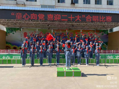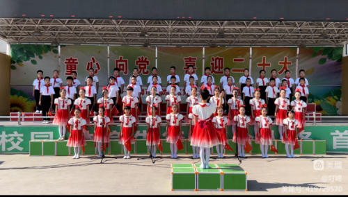 五年级的同学们将一首首振奋人心的红歌与天真活泼的童声交织在一起,抒发着对祖国的热爱,对童年的赞美。