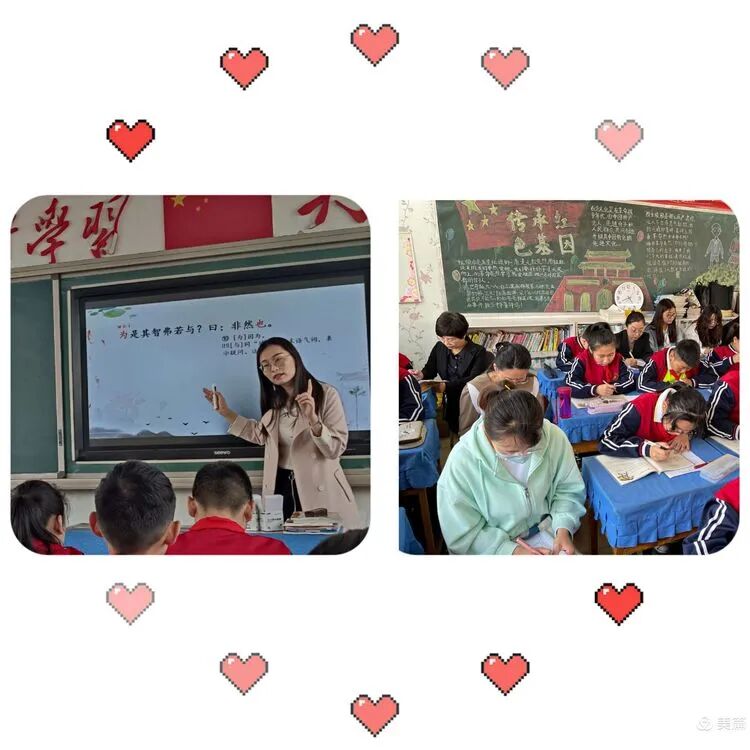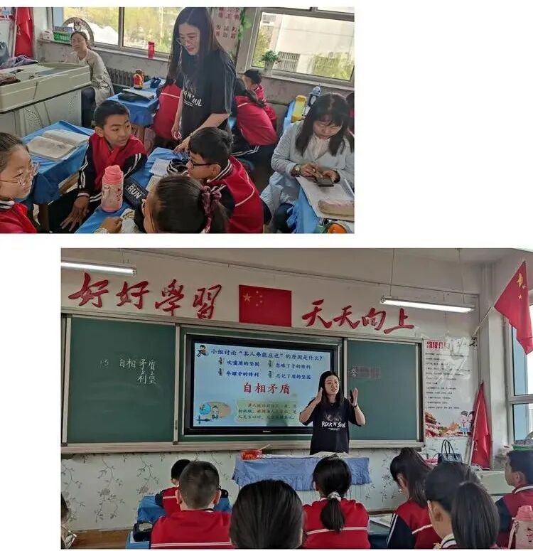 预备党员赵晨老师抓住每一次锻炼和提升自己的机会,积极承担讲课任务,第二节课在六年级二班讲授六年级下册第14课《文言文二则》中的《学弈》,通过让学生看插图感知课文大意,读译文理解课文大意,在整体把握的基础上让学生回到原文,通过质疑问难解决难理解的文言词语的含义,然后又对文中出现最多的“之”借助具体的语言环境让学生理解它的意思,经过这样的训练,学生体会到了文言词语的特点和妙处,也提高了学生阅读文言文的能力。