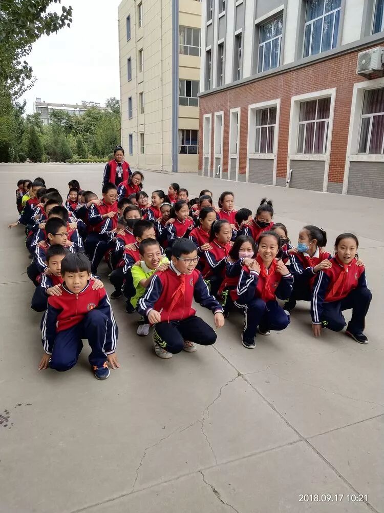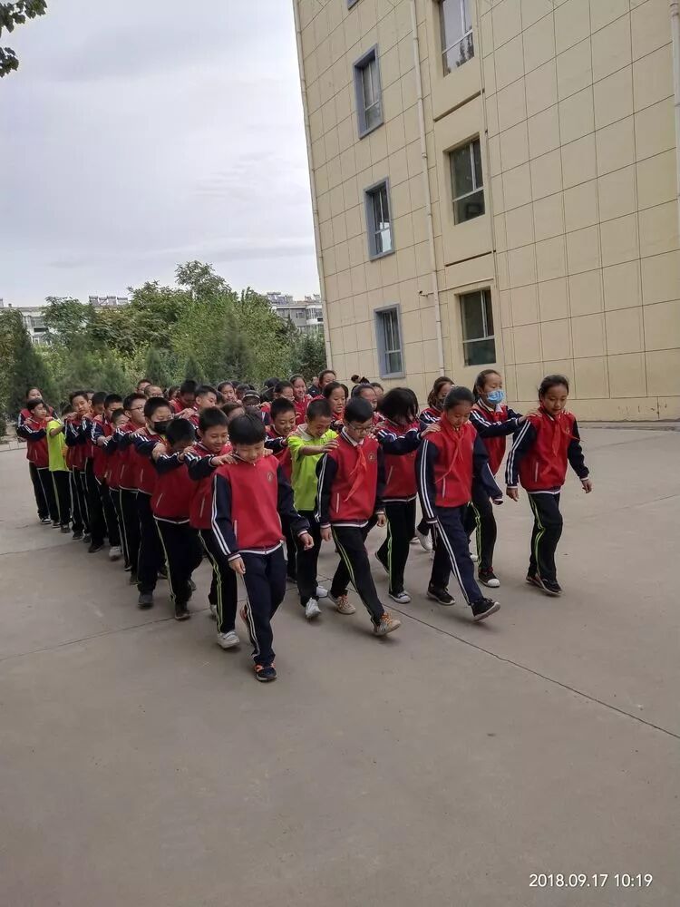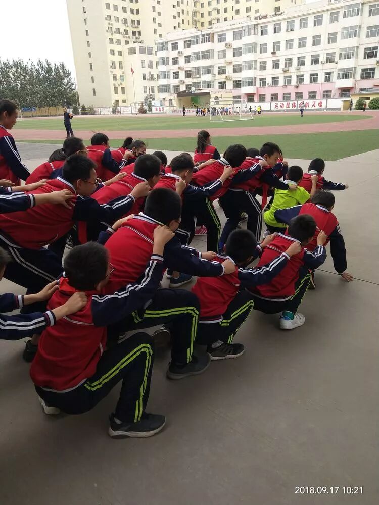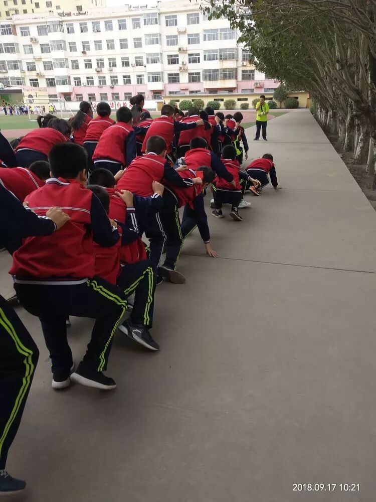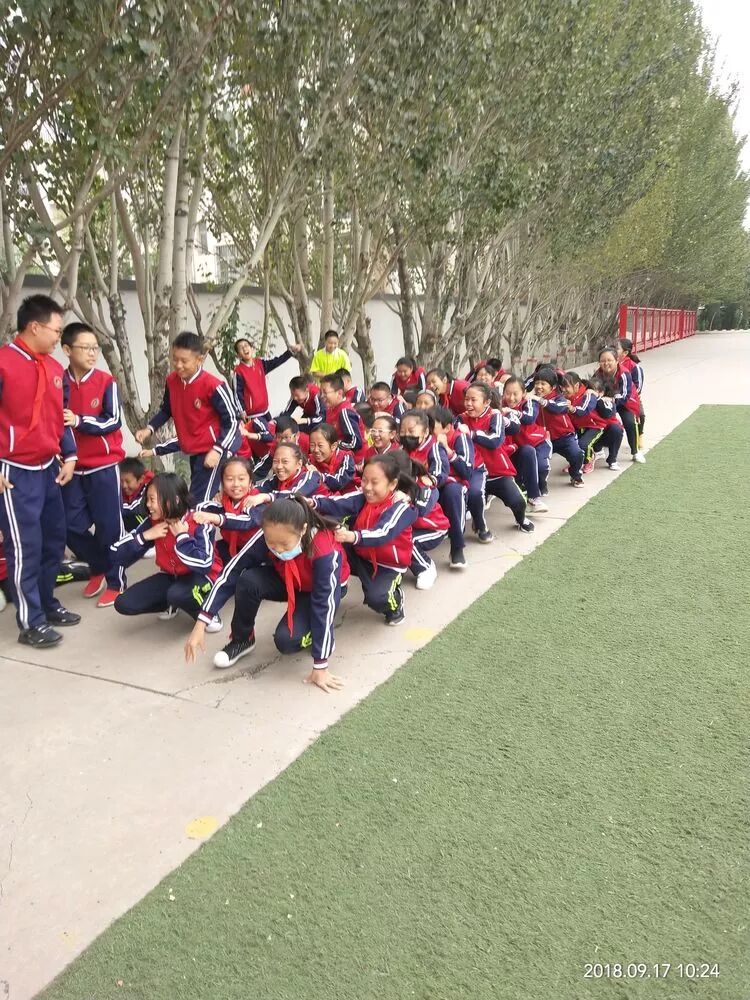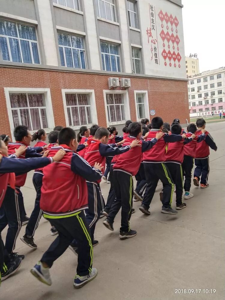今天是孩子们第一次上户外拓展课,听说心理健康课还可以边玩边学,个个开心喜悦!当老师宣布游戏规则时,全部认真倾听,生怕漏掉重要环节,第一个游戏大家一听觉得难度不大,有些放松,可是真正开始比赛时发现并不简单,十几个人快速有效的到达终点,既得有合作还得动作协调,孩子们很快做了调整,有的是靠口令一二一完成统一动作,有的小组是搭肩一起跳的走……大家都各显身手,智慧被激发了,从中体验到团队是一体的,哪个队友都不能掉队才能获胜。