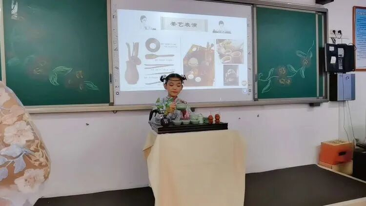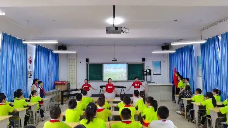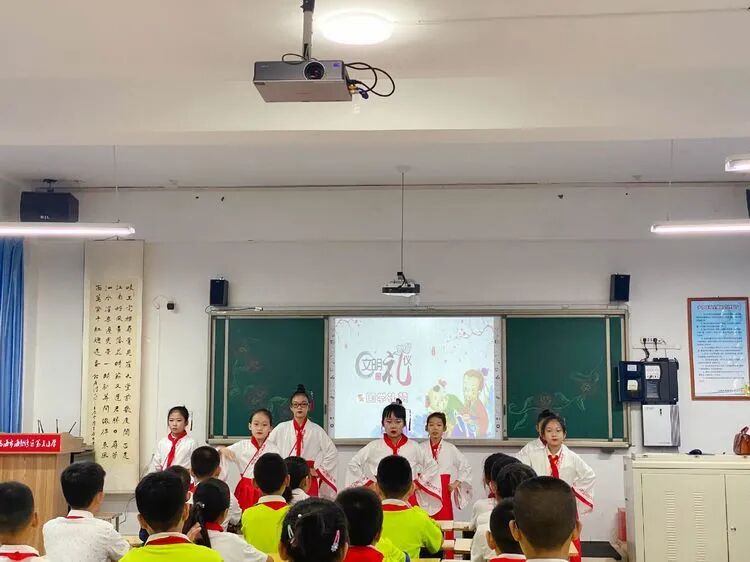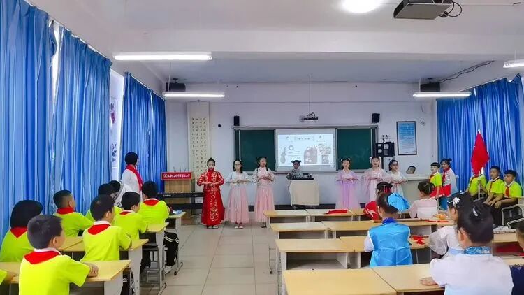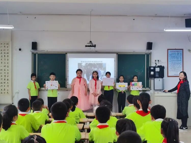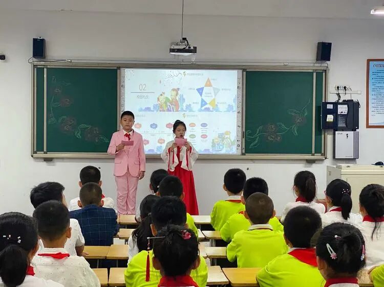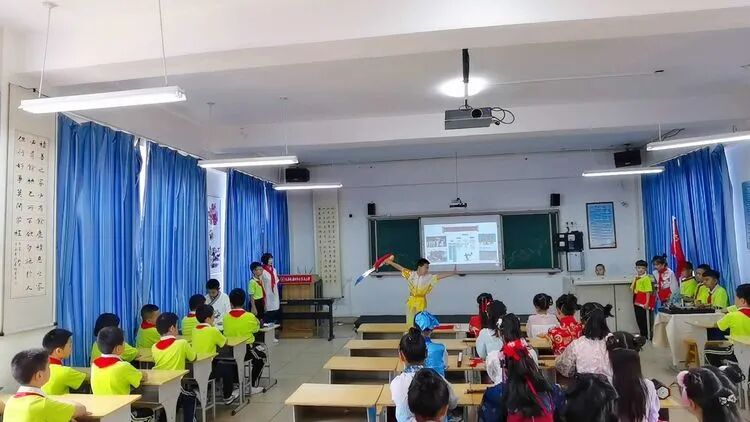 在四年级辅导员的精心准备下,开展了《小小追梦人》、《优秀传统文化进校园》、《小手拉大手,做文明礼仪小标兵》、《小手拉大手 爱党爱国爱家乡》、《小手拉大手、做敬老爱老的好孩子》、《国旗下的成长》的主题中队活动,队员们利用知识竞赛、诗朗诵、乐器演奏、舞蹈表演、情景剧、茶艺、武术、书画等表演方式表达了他们的爱国情怀。